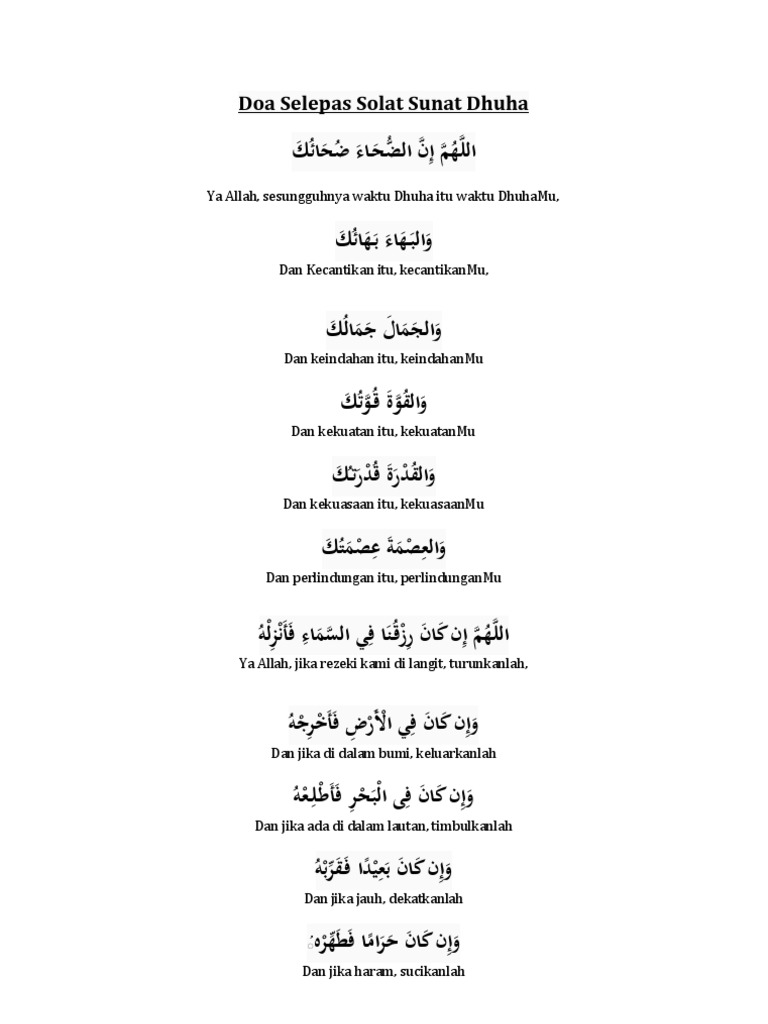 Doa Selepas Solat Sunat Dhuha Pdf