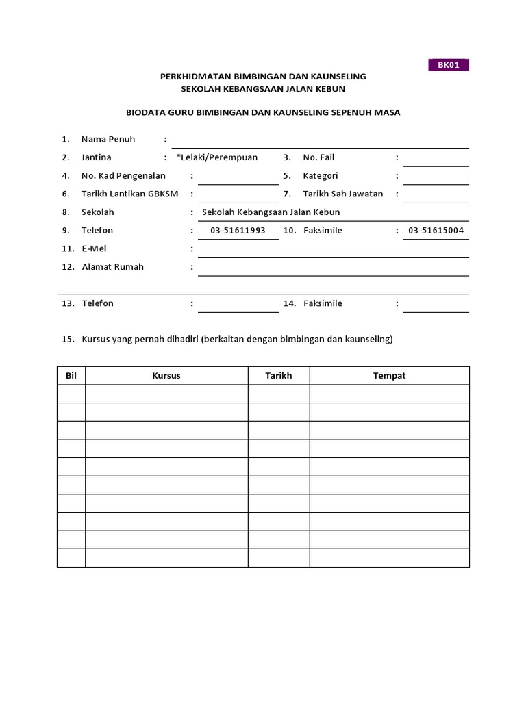 Borang Borang Unit Bimbingan Dan Kaunseling Sekolah Kebangsaan Jalan Kebun Pdf Pdf